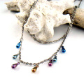 マルチカラーのネックレスはどんな装いにも合わせやすく、