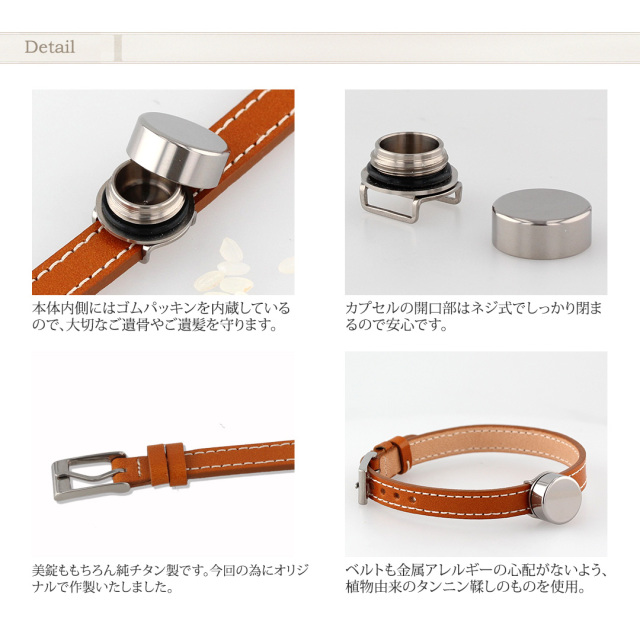 思いの外小さめでしたがとっても軽くて素敵なブレスレットが届きました。この様な形の遺骨入れを作って頂いてありがとうございます。わんちゃんの歯も入ります。いつも一緒だと思って大切にします。