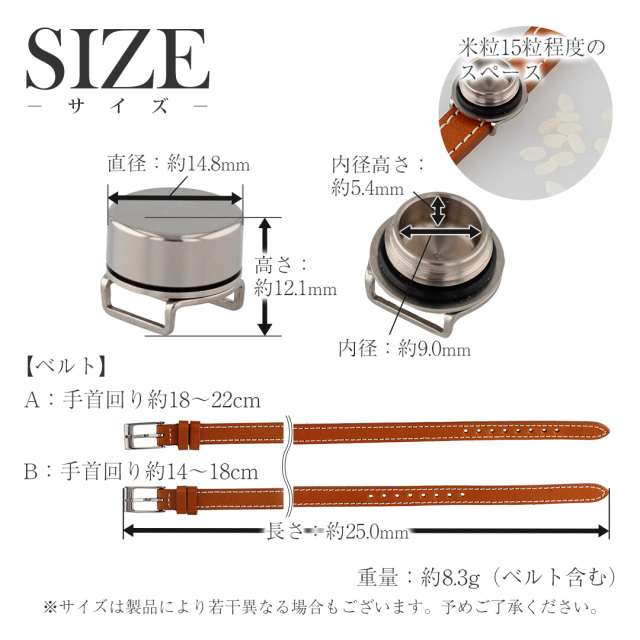 | 推奨サイズ | A:手首回り約18〜22cmの方におすすめ B:手首回り約14〜18cmの方におすすめ |