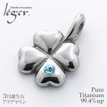 純チタンペンダントトップ 四つ葉のクローバー(3月誕生石 アクアマリン) TB20-3