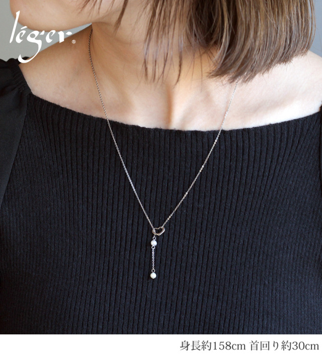 ハート部分をパールまで延ばせば最大50cmのネックレスに