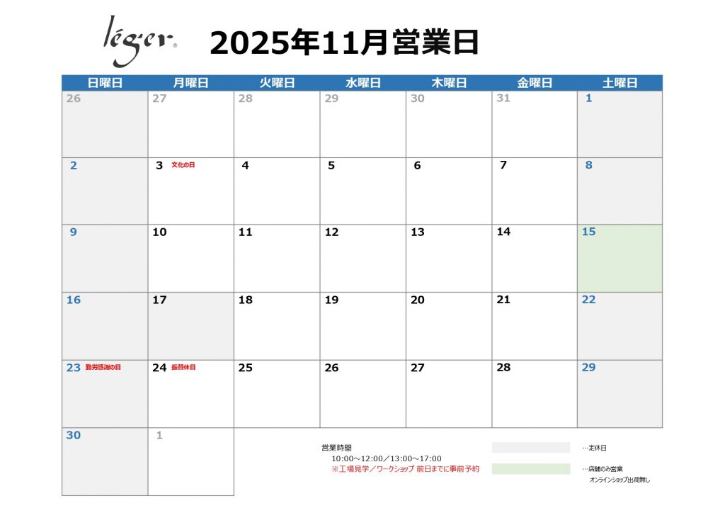 2025年11月 レジエ営業日カレンダー